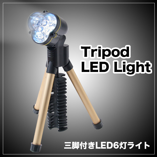 ■アウトレット 三脚付き LED 6灯ライト 自立 ハンディライト 電池式 三脚スタンド 切替 トライポッド LED6灯ライト (c-HR81498) LEDライト