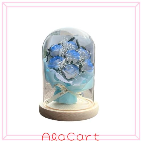 ◆商品名:フレグランスソープフラワー フェアリー 7輪ローズ カーネーションBOX ギフトボックス バラ ガラスドーム LEDライト 枯れない花 造花 シ