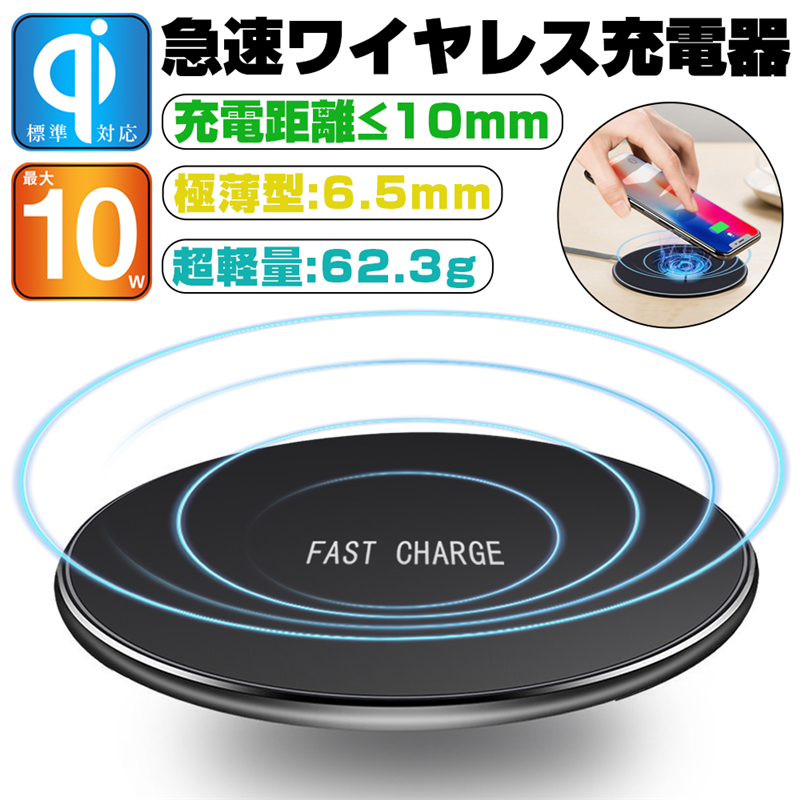 ※ワイヤレス充電非対応機種は利用できません、予めご了承ください。【置くだけ充電】ワイヤレス対応機器を置くだけで、ワイヤレス充電できます。ケーブルが不要で、とても便利です。【安全充電】ワイヤレス充電に開発したスマートチップを搭載し、温度調節機能付き、不安な過熱、過充電や電子回路のショートなどのトラブルを対策します。長時間ご安心してお使いいただけます。【持運び便利】手のひらサイズのコンパクトで薄い設計、置き場所にも困らない、軽量、コンパクト、持運びやすい、チャージボード仕様となっております。どこヘ行っても気軽に持ています、出張、長時間旅行の方にもお勧めです。【ケースのまま】ケースをつけたままでも充電ができるように設計されています。ただし、約5mm以上の厚みがあるケース、金属製や磁気ケース、およびクレジットカードなどは、充電前に取り外してください。【パッケージ内容・3ヶ月保証あり】ワイヤレス充電器本体*1、Micro USBケーブル*1、取扱説明書、3ヶ月保証(※注文番号が保証書の代わりとなります)、カスタマーサポート。カラー:ブラック、ホワイト
