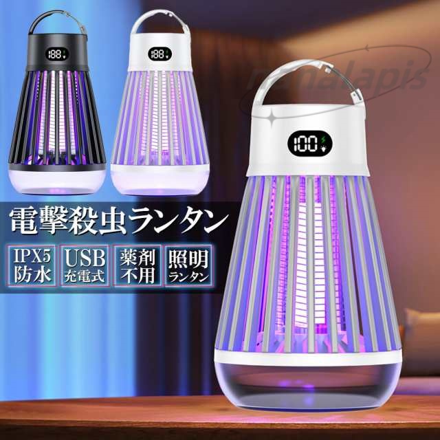 電撃殺虫器 電撃殺虫機 電気蚊取り器 捕虫器 UV光源誘引式 照明 ランタン LEDライト 吊り下げ 据え置き USB充電 防水 殺虫ライト 殺虫灯 虫除け 蚊取り器 コバエ取り 薬剤不用 無毒無害 省エネ アウトドア 屋外室内用