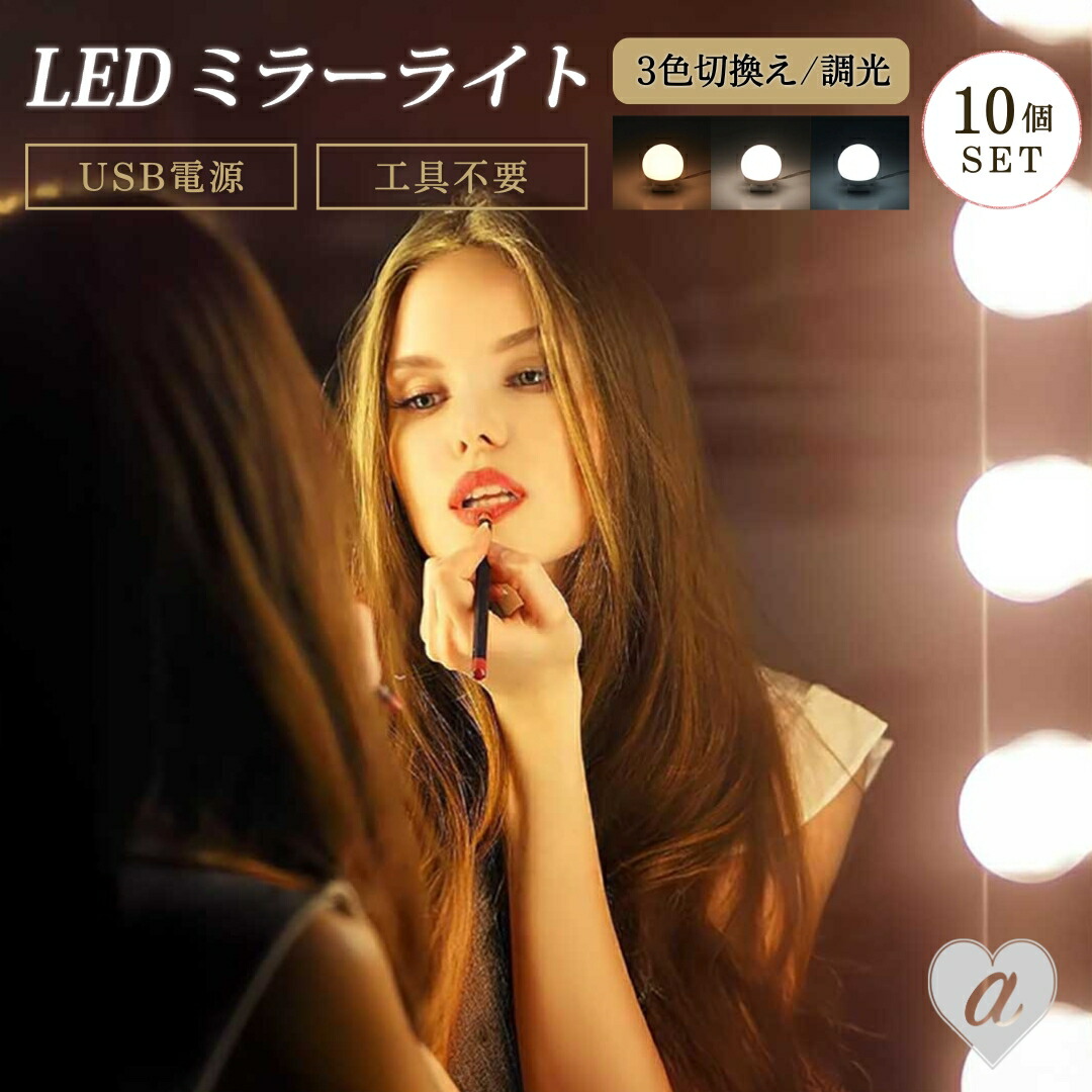 ミラー装飾 メイクアップミラーランプ ハリウッドミラーライト LEDライト 10球 USB 高輝度 輝度調整 3段階調色 明るさ調節可 取り付け簡単 長さ調節可 穴開け不要 工具不要 照明 女優ライト LEDミラーライト メイクアップライト LED ミラーライト 化粧鏡 電球 テーブルランプ 化粧ライト 化粧台ライト メイクアップ 女優鏡 女優ミラー ハリウッドミラー ドレッサー 化粧室 化粧台 鏡台 鏡面 洗面台 美容室 美容院 サロン ホテル 温泉 浴室 楽屋 装飾 化粧 メイク 歯磨き スキンケア 撮影用 パーティー デコレーション 後付け DIY おしゃれ シンプル