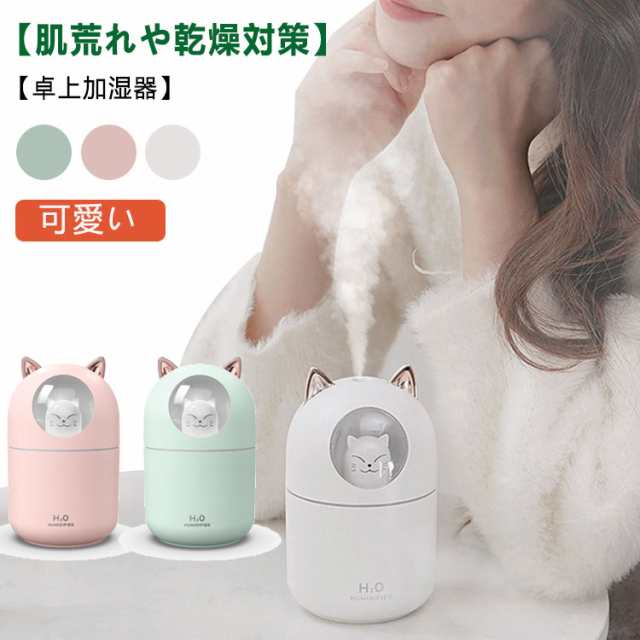 ミニ 加湿器 USB 卓上 アロマ 可愛い 小型 LEDライト 花粉対策 超音波 ディフューザー 小型 300ML 2つモード コンパクト 車載 空焚き防止 おしゃれ ギフト プレゼント