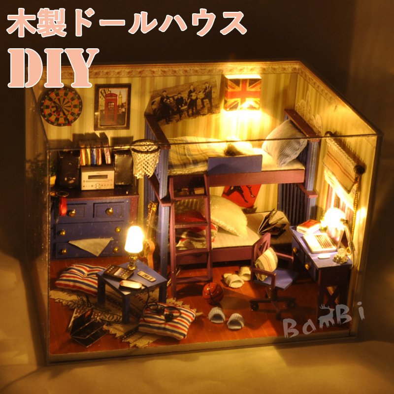 ■DIY木製ドールハウス 手作りキットセット ミニ家具工芸品キット ミニチュアコレクション LEDライト 誕生日プレゼント