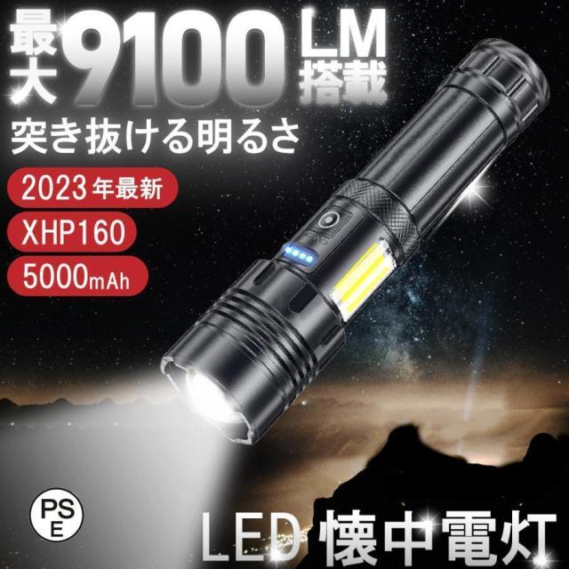 ■懐中電灯 LEDライト 8000ルーメン ハンディライト 9つモード USB充電式 広角照明 COBライト 防水 防災 電池残量表示 ズーム 停電