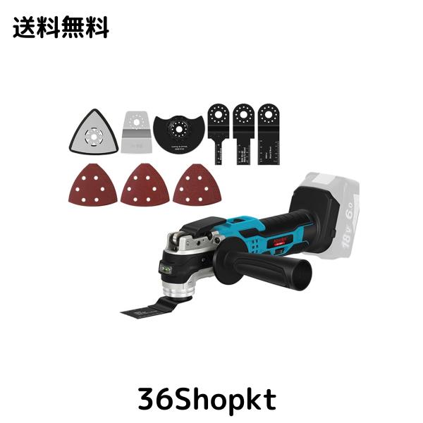 ■Mrupoo 充電式マルチツール 電動振動ツール スペック角度3° HY-7041 コードレス 6段階変速型 LEDライト 電動工具 替刃9点セット付き 左