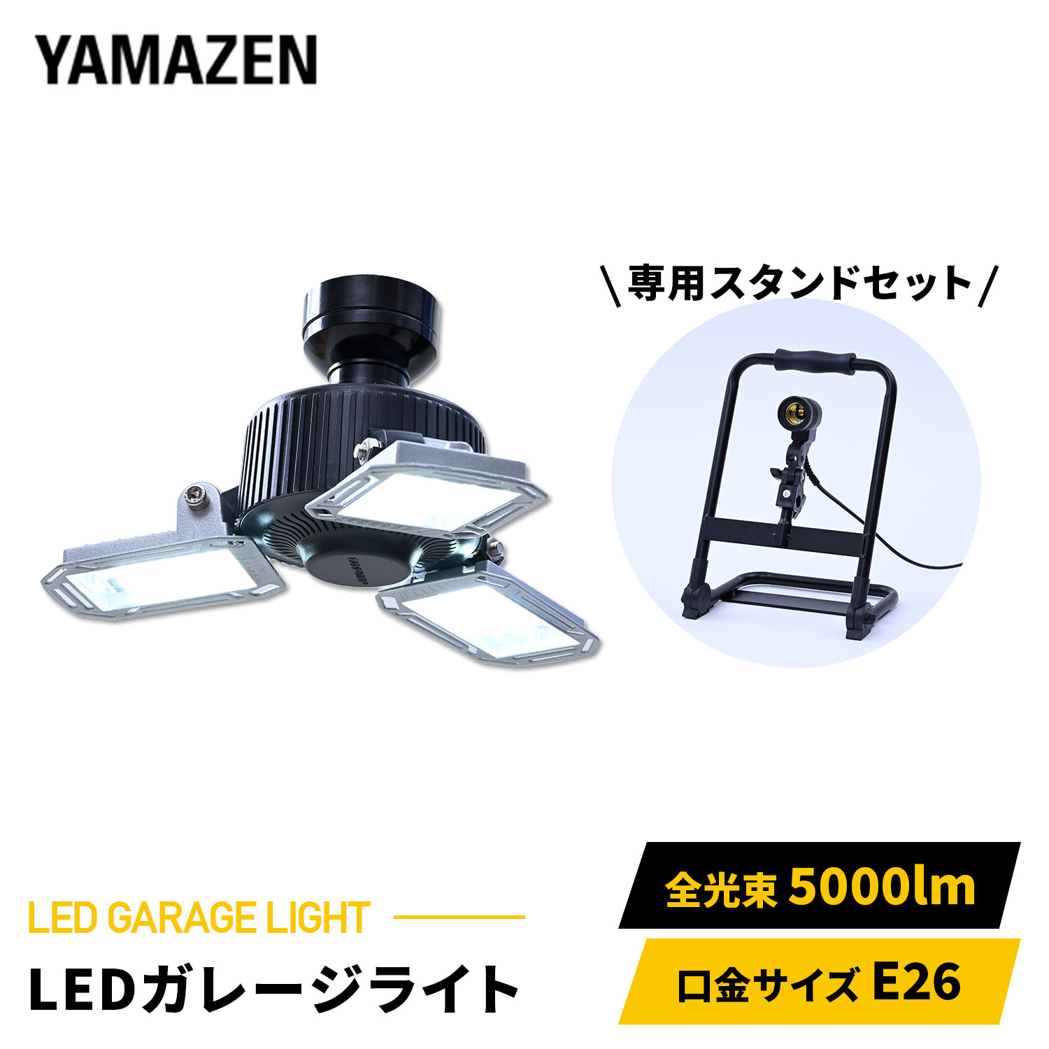 ■LED ガレージライト 作業灯 5000lm 口金E26 屋内用 ポータブルスタンド GL3-0500/PLS-E26 LEDライト 工事不要 車庫 倉庫 作業灯 山善