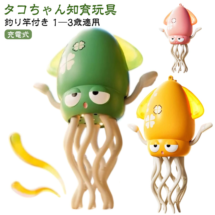 ■知育玩具 イカおもちゃ タコおもちゃ 充電式 幼児 電動おもちゃ 釣り竿付 子供 集中力 子ども LEDライト 音楽 発育 早期開発 男の子 タコ