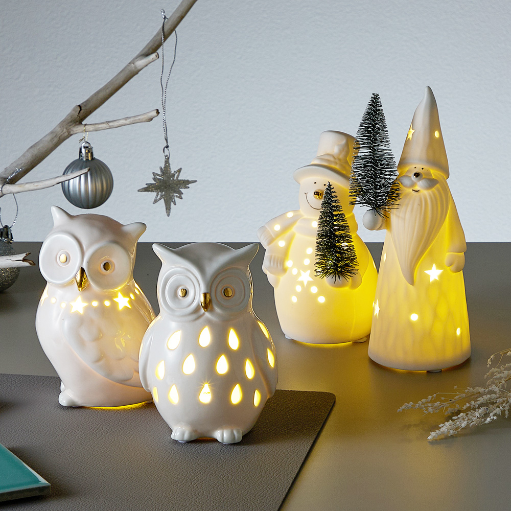 ■【ベルメゾン】【クリスマス】サンタとスノーマンのセラミックLEDライト