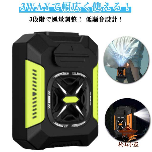 ■LEDライト 大風量 ファン 節電 小型 ポータブル 扇風機 Type-C対応 冷却 軽量 携帯扇風機 USB充電式 ベルト付き 腰かけ扇風機 LED懐中電