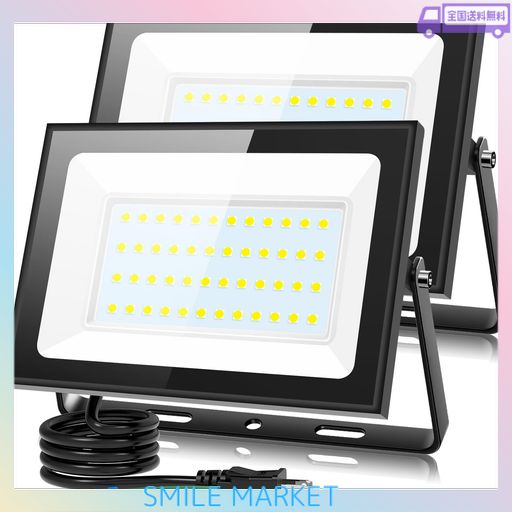 ■KIWEN【超薄型・2個セット】 LED投光器 80W 10000LM 昼光色 LEDライト 屋外 IP66 防水 豪雨対応 作業灯 LED 100V対応 アース付きプラグ