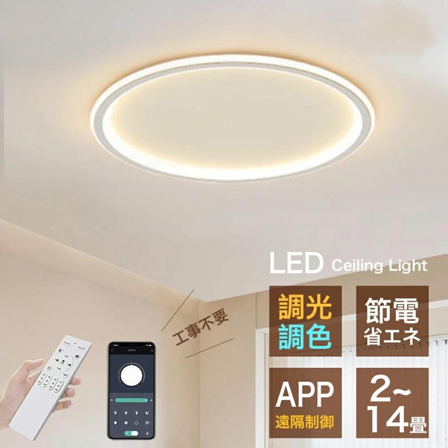 ■シーリングライト LED 北欧 おしゃれ 調光調色 6~14畳 照明器具 天井照明 シーリング照明 常夜灯 間接照明 電球色 スマホ制御 リモコン付