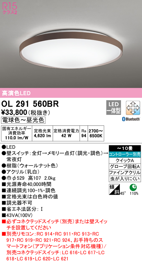 ■(送料無料) オーデリック OL291560BR シーリングライト LED一体型 電球色〜昼光色 Bluetooth対応 ODELIC