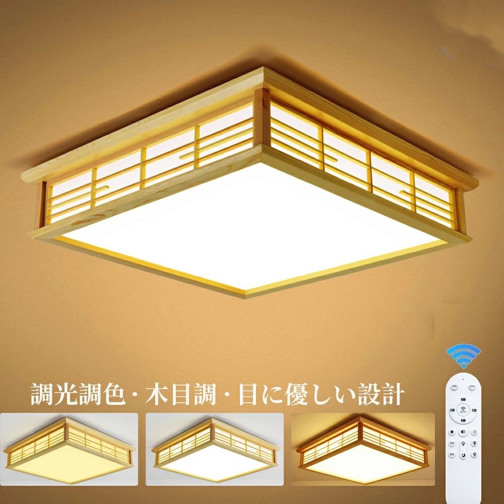 シーリングライト おしゃれ 調光調色 LED照明 木目調 和風 和室 4畳 6畳 8畳 四角 引掛対応 おしゃれ 天井照明 照明器具 工事不要 節電 リビング 子供部屋 寝室 玄関 廊下 洋室 無段階調光調色 常夜灯 リモコン付き 取付簡単 工事不要 インテリア 省エネ