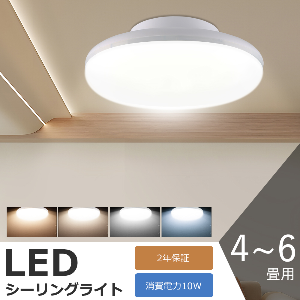 ■LEDシーリングライト 4畳 6畳 10W 2000LM 白色 シーリングライト LED LEDライト 照明 6畳用 シーリングライト 薄型 おしゃれ LED照明器