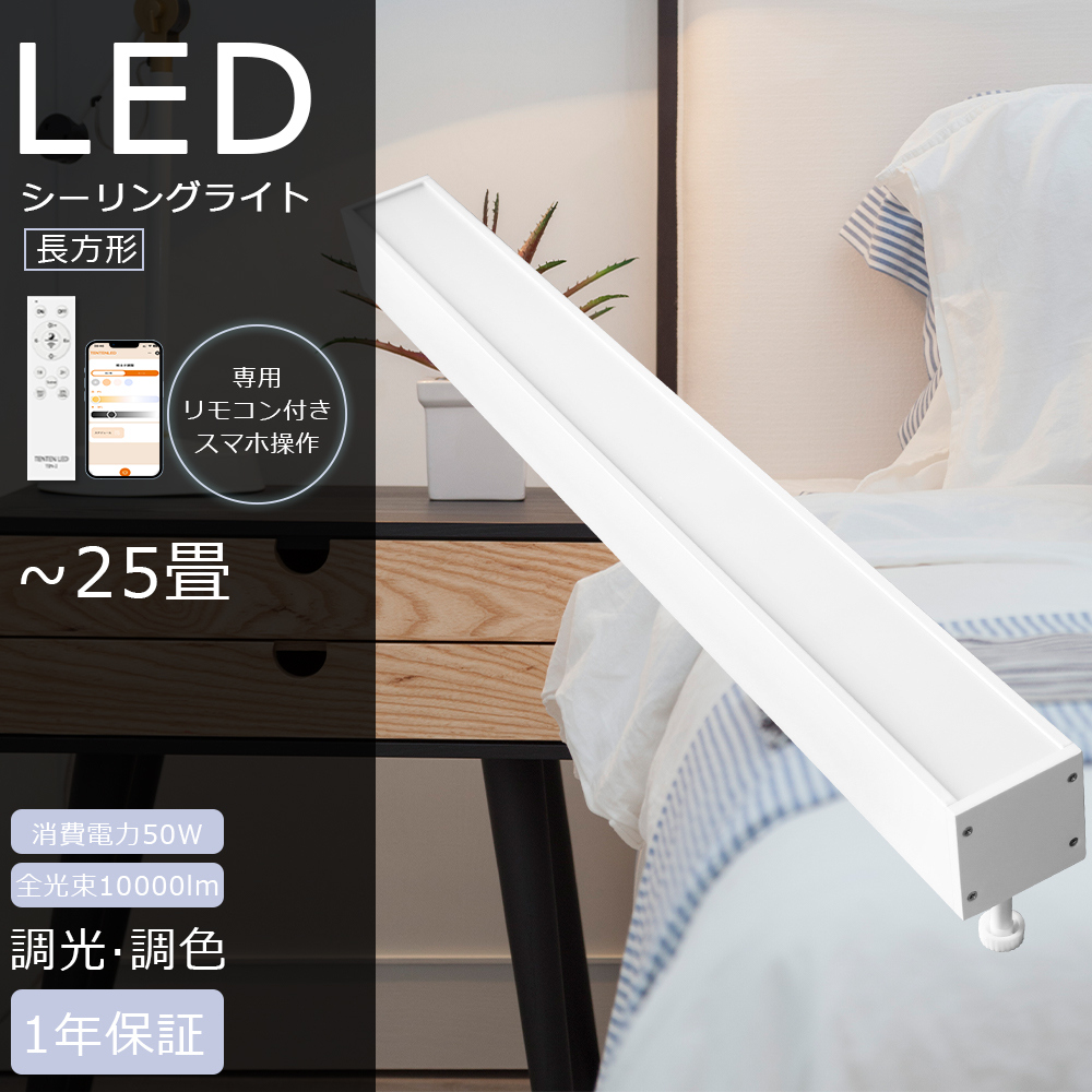 ■LEDシーリングライト 20畳 調光調色 50W ダクトレール LED シーリングライト 長方形 リモコン シーリングライト 直管形 オフィス 玄関 和