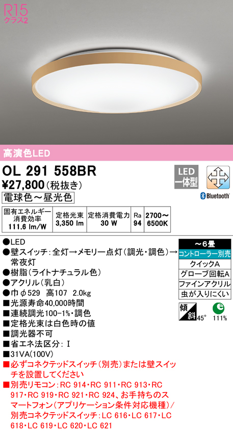 ■(送料無料) オーデリック OL291558BR シーリングライト LED一体型 電球色〜昼光色 Bluetooth対応 ODELIC