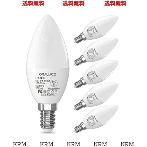 ■ORALUCE LED シャンデリア 電球 e12 led 40W相当 昼光色 6500K 5W 450lm 燭台電球 高輝度 省エネ 密閉形器具対応 非調光 6個入