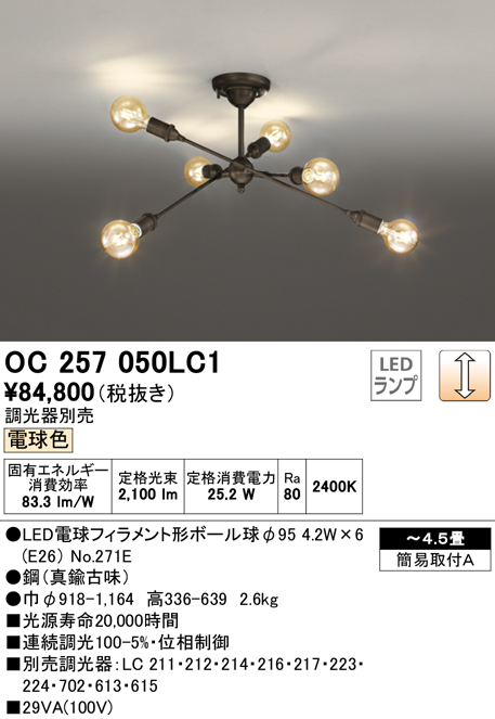 ■(送料無料) オーデリック OC257050LC1 シャンデリア LEDランプ 電球色 調光 ODELIC