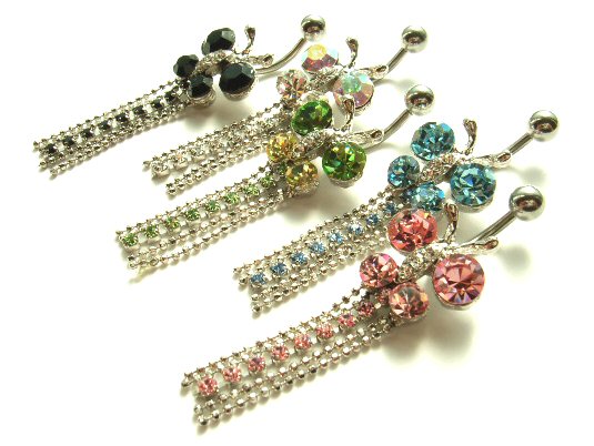 ■【メール便対応】ヘソピアス 蝶(バタフライ) シャンデリア 14G(1.6mm) h528 ラインストーン ボディピアス ラインストーン ヘソピ バナナ