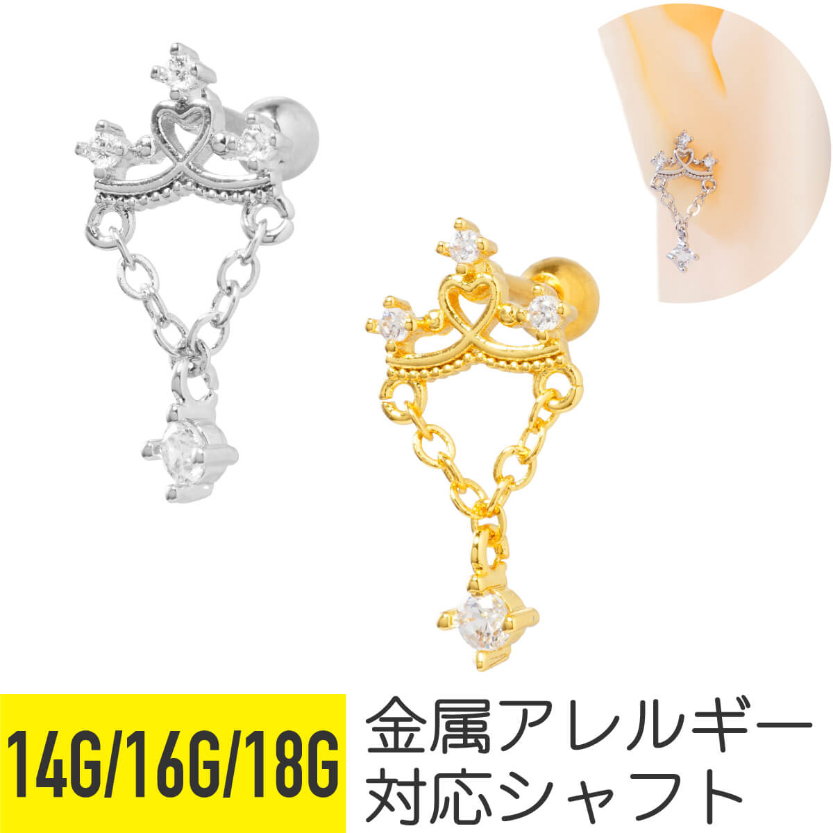 ■シャンデリア ドロップ ジュエル ストレートバーベル 14G 16G 18G サージカルステンレス ヘリックス 軟骨ピアス ボディピアス 揺れる