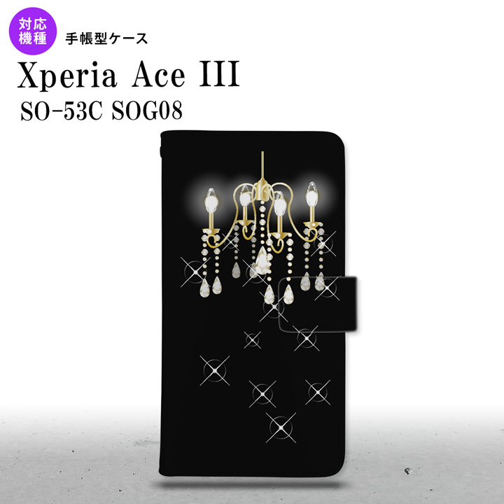 ■SO-53C SOG08 ワイモバイル Xperia Ace III 手帳型スマホケース カバー シャンデリア 黒 nk-004s-so53c-dr091