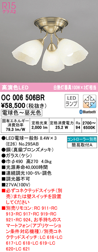 ■(送料無料) オーデリック OC006506BR シャンデリア LEDランプ 電球色〜昼光色 Bluetooth対応 ODELIC