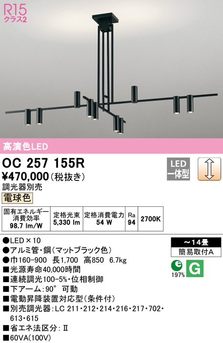 ■(送料無料) オーデリック OC257155R シャンデリア LED一体型 電球色 調光 ODELIC