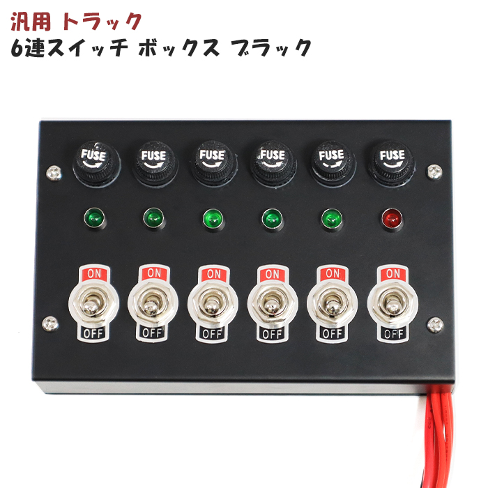 汎用 12V / 24V トラック 6連 スイッチ ボックス ブラック 新品 電源 シャンデリア 電飾 デコトラ パイロット ランプ 付き コントロール