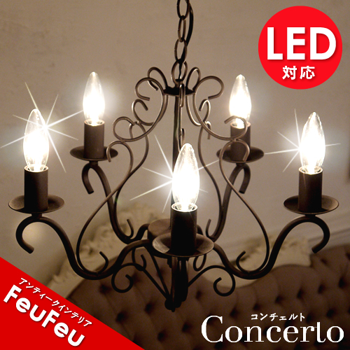 ■シャンデリア「コンチェルト」(Concerto)シンプル シャンデリア 5灯 ラスティブラウン シーリングライト アンティーク