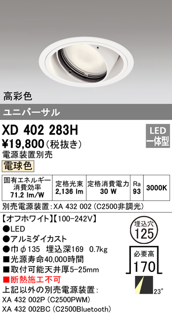 ■(送料無料) オーデリック XD402283H ダウンライト LED一体型 電球色 M形(一般形) ODELIC