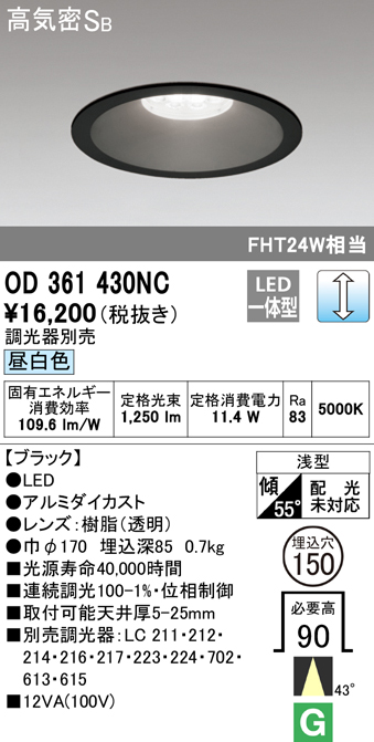 ■(送料無料) オーデリック OD361430NC ダウンライト LED一体型 昼白色 調光 高気密遮音SB形 ODELIC