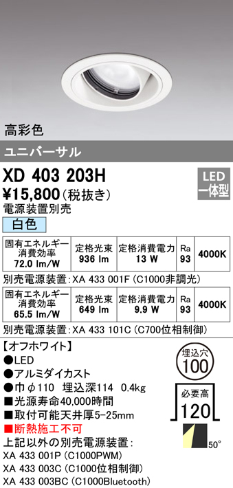 ◆メーカー:オーデリック ◆品名:ダウンライト LED一体型 白色 M形(一般形) ◆品番:XD403203H ・商品スペックについては商品画像をご参照くださいませ。 ◆沖縄県は配送不可となります。ご了承下さい。 ※「発送先が北海道・沖縄・離島地域」に該当するお客様は別途送料がかかる場合がございます。 システムの都合上、ご注文時には送料が加算されておりませんが、 ご注文完了後に当店よりメールにて追加送料の承諾が取れてから手配を進めさせていただきます。 「発送先が北海道・沖縄・離島地域」に該当するお客様で ご注文前に送料を知りたい方はお問い合わせいただけましたらご案内いたしますので、 お気軽にお申し付けください。