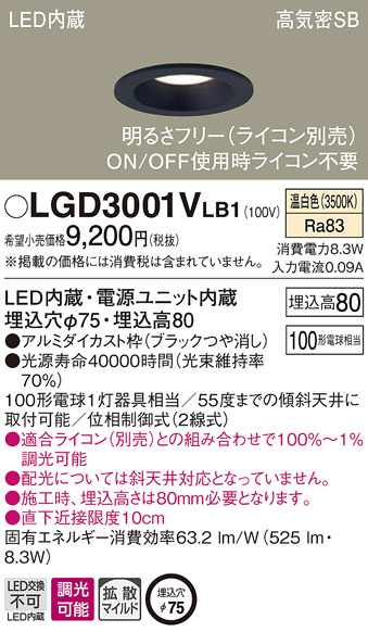 ■パナソニック LGD3001VLB1 ダウンライト100形拡散温白色 Panasonic
