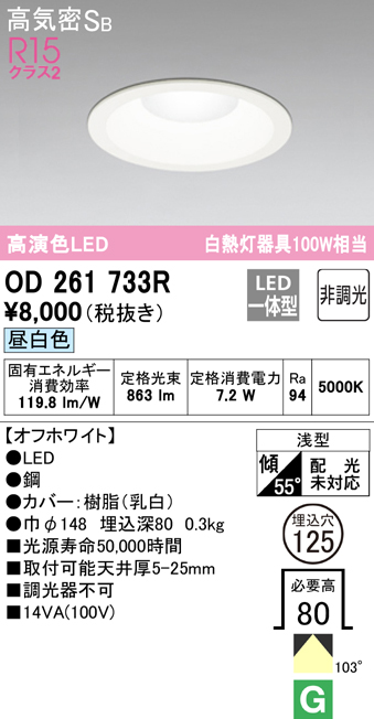 ■オーデリック OD261733R ダウンライト LED一体型 昼白色 非調光 高気密遮音SB形 ODELIC