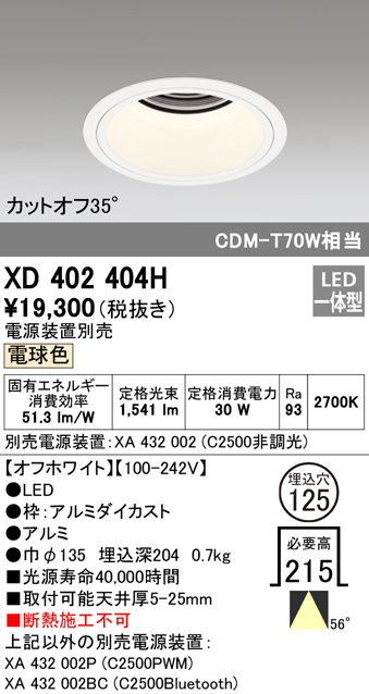 ■(送料無料) オーデリック XD402404H ダウンライト LED一体型 電球色 M形(一般形) ODELIC