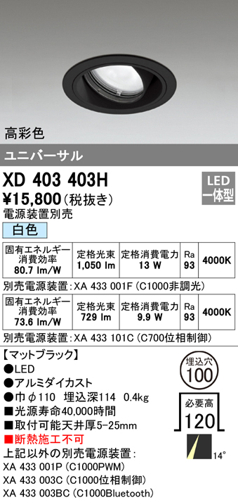 ■オーデリック XD403403H ダウンライト LED一体型 白色 M形(一般形) ODELIC