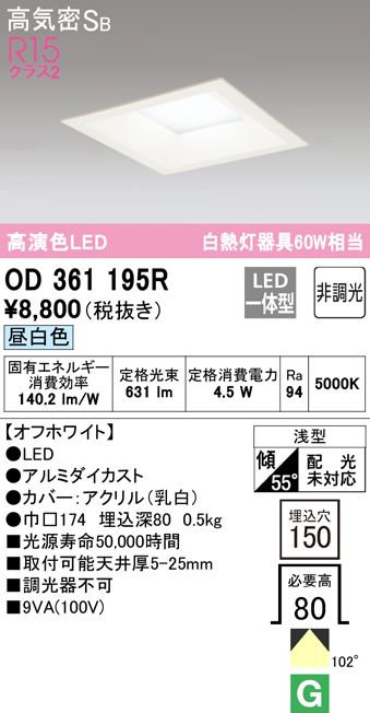 ■オーデリック OD361195R ダウンライト LED一体型 昼白色 非調光 高気密遮音SB形 ODELIC