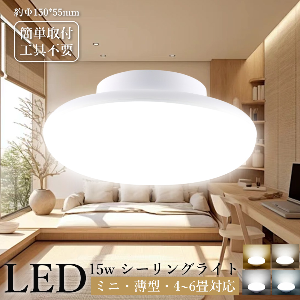 ■led シーリングライト 4~6畳対応 シーリングライト 15w 天井照明 一体型照明器具 ダウンライト おしゃれ 間接照明 常夜灯 天井直付型LED