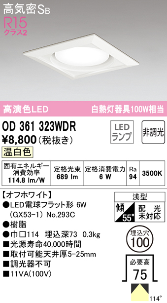 ■オーデリック OD361323WDR ダウンライト LEDランプ 温白色 非調光 高気密遮音SB形 ODELIC