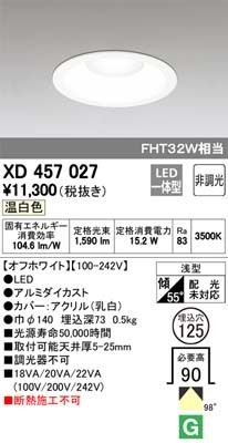 ■(送料無料) オーデリック XD457027 ダウンライト LED一体型 温白色 非調光 M形(一般形) ODELIC