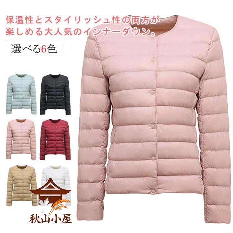 ダウンジャケット インナーダウン レディース ショート ライトダウン 薄手 ノーカラー ジャケット 2way ラウンドネック ダウンライト 軽量 重ね