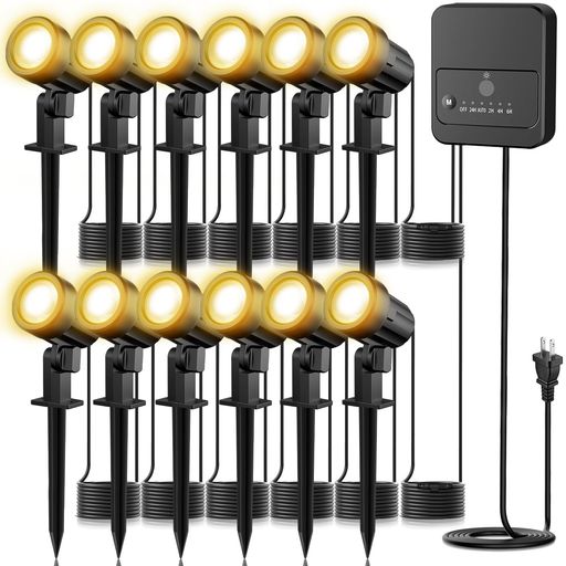 ■CLY LEDガーデンライト スポットライト 電球色 2700K ACコンセント式【2025年新版 12灯式 ワンプラグ・マルチランプ・24時間と夜間点灯・