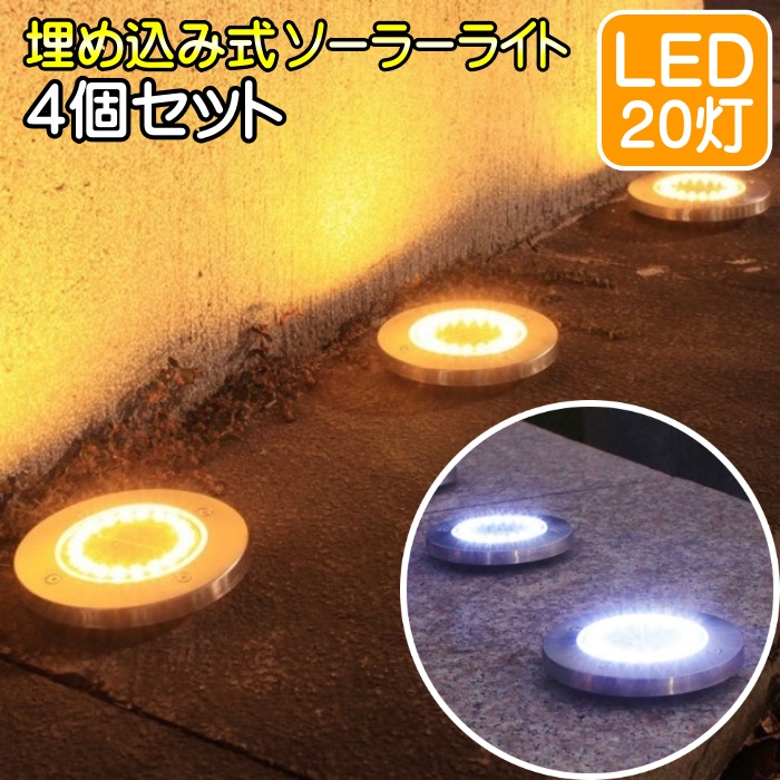 ■ソーラーライト 埋め込み式 LED 屋外 防水 庭 明るい おしゃれ ガーデンライト スポットライト 照明 置き型 埋込 4個 イルミネーション