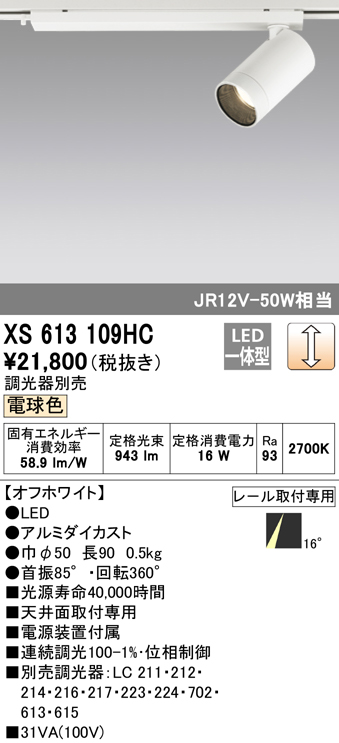■オーデリック XS613109HC スポットライト LED一体型 電球色 調光 ODELIC
