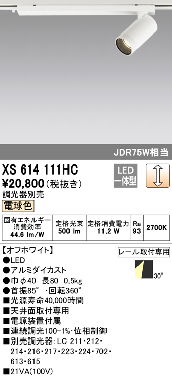 ■オーデリック XS614111HC スポットライト LED一体型 電球色 調光 ODELIC
