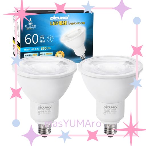 ■DiCUNO E11口金 LED電球 スポットライト 昼白色 6W 60W形相当 5000K 660lm LEDスポットライト 密閉器具対応 広角タイプ AC100V 非調光 PS