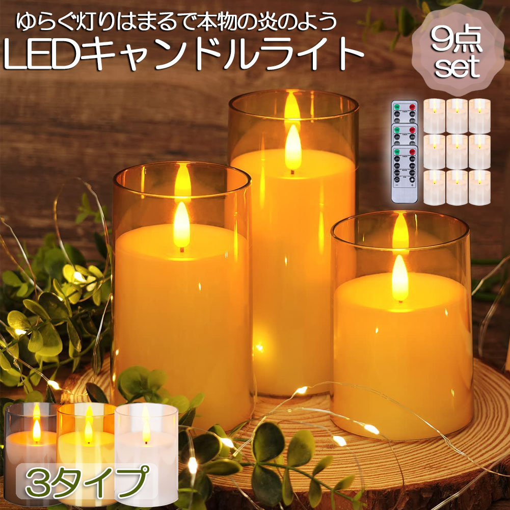 ■LEDキャンドルライト キャンドルライト テーブルライト 9点セット ゆらぎ ロウソク 本物の炎のようにゆらめく 火を使わない ゆらゆら揺れ