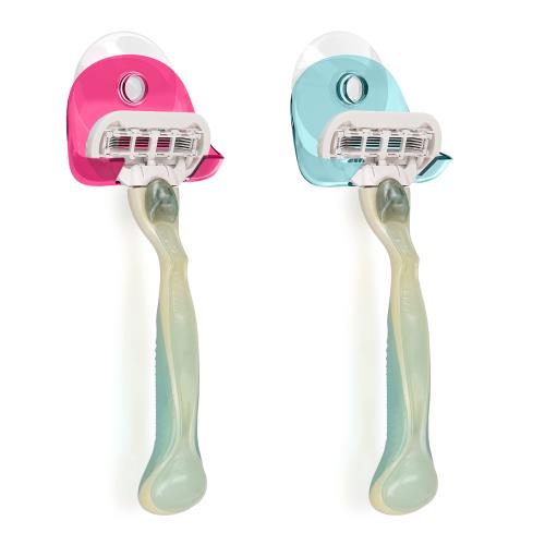 kwmobile 2x カミソリホルダー 吸盤フック - 洗面所 お風呂 バスルーム 吸盤シェイバーホルダー 繰り返し使えるライトブルー/ダークピンク/透明