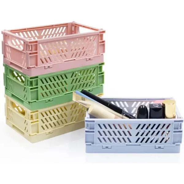 ■さまざまな色のプラスチック製の折りたたみ式サンプル収納ボックス 4 個は、寝室、オフィス、教室、バスルームでの使用に最適です。