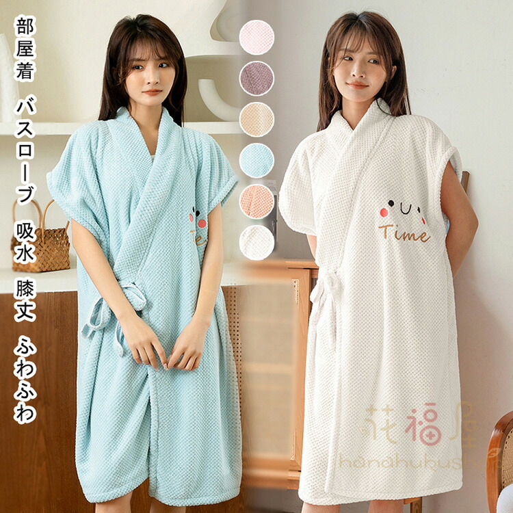 ■部屋着 バスローブ 吸水 半袖 膝丈 ふわふわ 着るバスローブ もこもこ ママ レディース 前開き 吸水速乾 軽い ギフト プレゼント ナイト